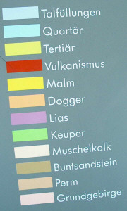 Geologische Karte der Schwäbischen Alb im Südteil. Die gelben Hochflächen werden vom Weißjura (Malm) gebildet. Klicken sie auf das Bild, um die Karte vergrößert zu sehen. |